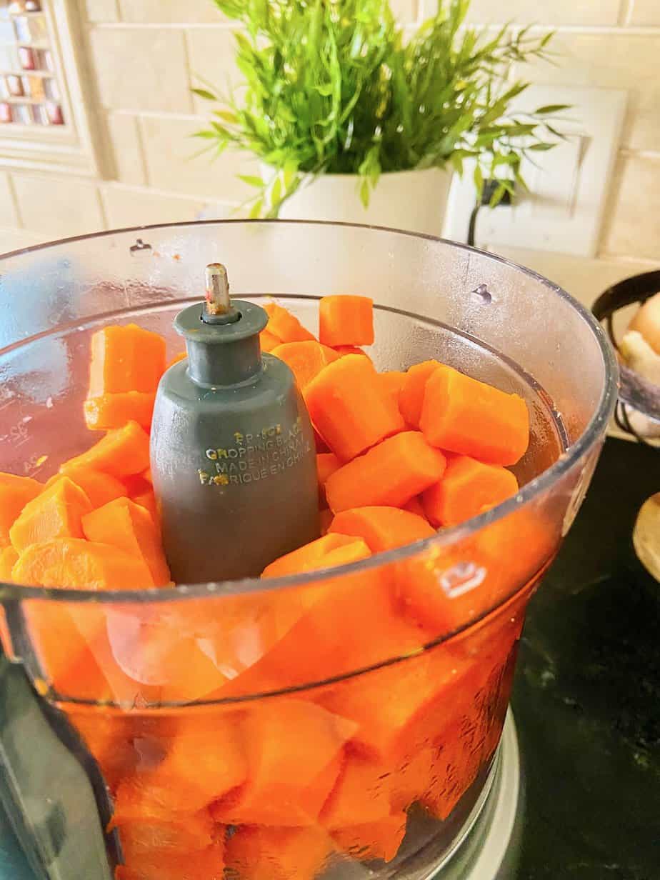 Preheat oven to 350 degrees F 175 degrees C. Place all of the ingredients in a mixer. Add carrots to a saucepan.